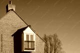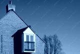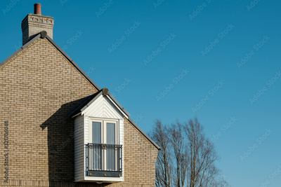 Single first floor balcony and room extension seen in fine detail. The apartments are located near a inland waterway. Taken on a bright winters day.