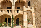 Fort St Angelo (Forti Sant Anglu), beautiful inner courtyard of Magisterial Palace inside the fort, famous historical landmark at Birgu Waterfront, Malta, Vittoriosa bay of the Mediterranean sea