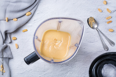 Preparation homemade peanut butter in a mixer, blender