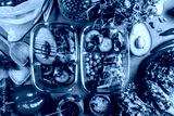 Healthy meal prep containers with chickpeas, chicken, tomatoes, cucumbers and avocados. Healthy lunch in glass containers on beige rustic background. Zero waste concept. Selective focus.