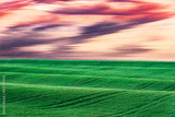 Abstract rural landscape with agricultural fields on spring hills. South Moravia region, Czech Republic
