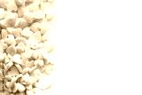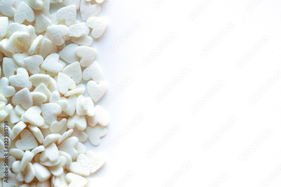 White small hearts frame background. Top view Valentines day concept macro. Copy space