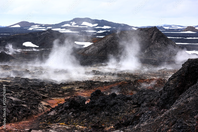 Reeky lavas field in the geothermal valley Leirhnjukur, near Krafla volcano, Iceland. Landscape photography