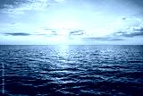 Panoramic view of the Baltic sea at sunset. Latvia. Clear sky, glowing clouds, reflections on water. Blue, pink, orange colors. Nature, seasons, travel destinations, cruise. Idyllic seascape