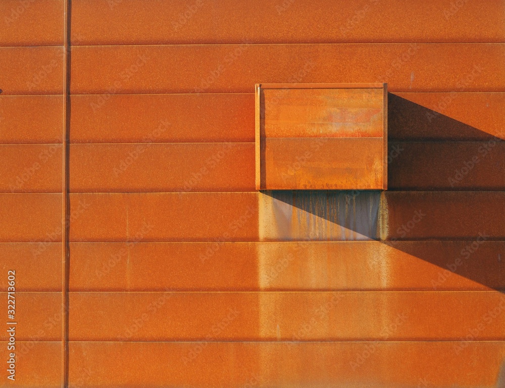 Wall cladding made of rusted corten steel. Background and texture, detail