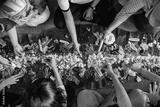 Top View portrait of people asian eating their food served on top of banana leaf lay on the floor. kembulan javanese eating tradition