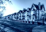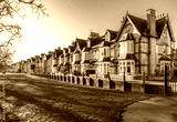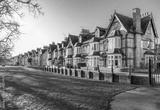 Characterful terraced houses on Park Parade facing Jesus Green in the city of Cambridge, UK.