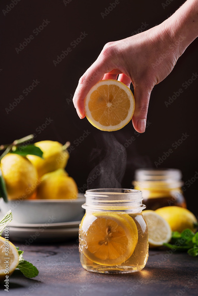 Hot lemon tea with mint