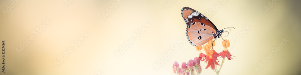 Nature of butterfly and flower in garden using as background butterflies day cover page or banner template brochure landing page wallpaper design