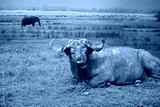 African water buffalo or cape buffalo laying in grasslands Ngorongoro Crater in Tanzania, Africa