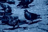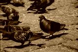 Hungry pigeons feeding at square