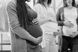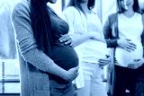 A group of young pregnant girls communicate in the prenatal class. Care and consultation of pregnant women
