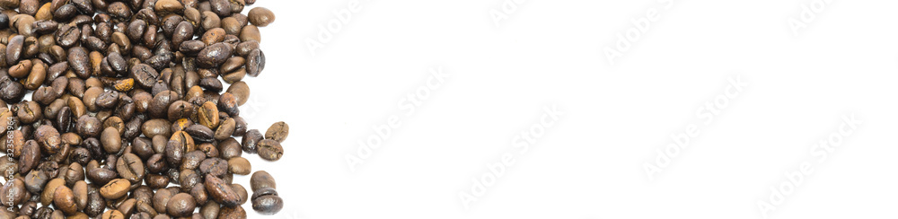 Pile of roasted Vietnamese robusta coffee beans isolated on white