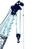 Construction crane for heavy lifting isolated on white background. Construction industry. Crane for lift with 50T safe working load. Crane for rent. Crane dealership for construction business.