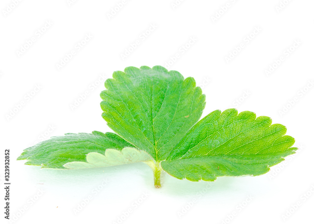 Green and fresh strawberries leaves isolated on white background