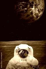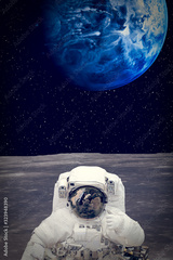 Astronaut on the alien planet. Stars above. The elements of this image furnished by NASA.