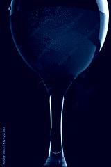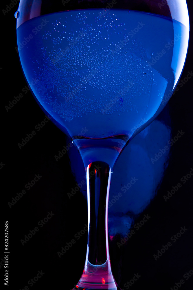 Glass with art blue water on black background. Celebration concept