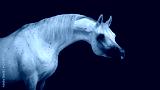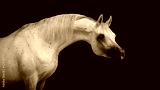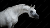 Portrait of a beautiful white arabian horse with long mane on black background isolated