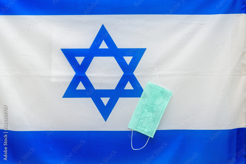 Coronavirus. Corona virus concept. Israel flag with medical mask to fight against Corona virus. Concept of protect against virus.