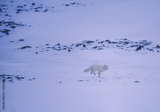 closeup wildlife white polar fox winter in the Arctic Svalbard on a sunny day