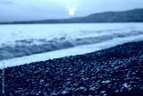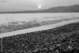Pebble beach in Nice,France during beautiful orange sunset. The sunset sun lights one of the most beautiful beach in the world. Calm sea, quiet waves.