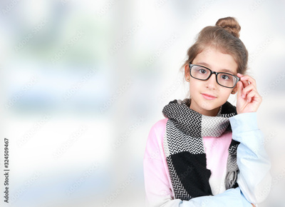 Teen age child girl in glasses portrait empty copy space,schoolgirl,education.