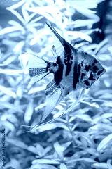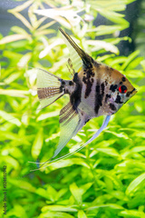 Underwater world of aquarium. Plants and fish in freshwater aquarium. Natural background Natural habitat. Home hobby.