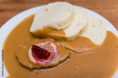 Beef Sirloin With Cream Sauce or Svíckova na smetane meal with bread