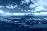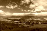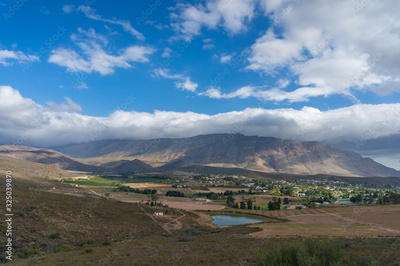 Dry arid countryside landscape with mountains and dam