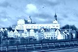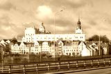 Szczecin cityscape with Ducal Castle seen from the city main highway entrance, Poland.