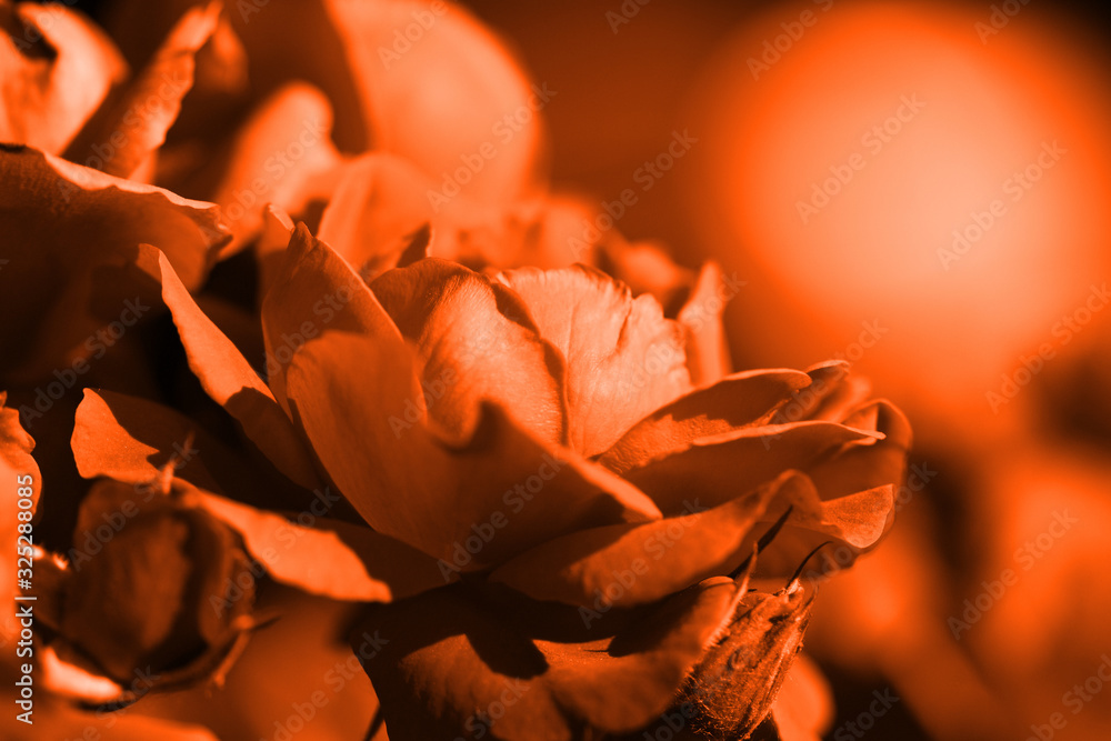 Beautiful rose flower in the summer garden closeup. Orange color toned