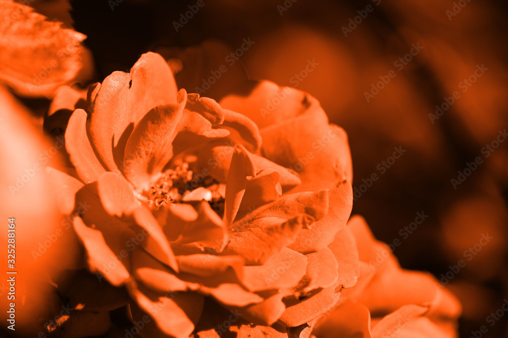Beautiful rose flower in the summer garden closeup. Orange color toned