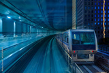 The concept is high speed. High-speed train rushes through the city. Fast movement. Transport infrastructure. Transport company. Moving around the city on high-speed transport.