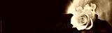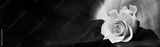 White rose on a dark textured background. Condolence card. Empty place for emotional, sentimental text or quote. Black and white image