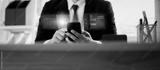 Technology concept with cyber security internet and networking, Businessman hand working on smartphone, screen padlock icon on digital display.