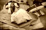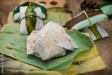 Tempe: raw tempeh (uncooked soybean cake) on banana leaf .