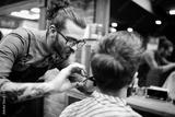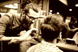Client during beard and moustache grooming in barber shop