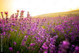 Beautiful lavender flowers close up on a field during sunset. Nature