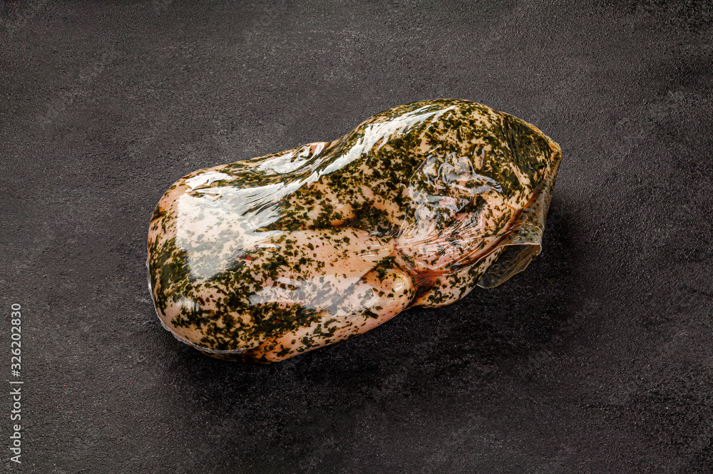 Shooting for the catalog. Raw meat products, different parts of the body. pork, beef, chicken. background image, copy space text