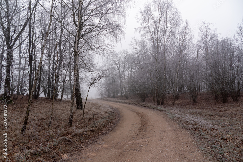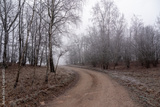 Łagodna zima na Podlasiu. Dolina Narwi. Krajobraz z mgłą i szronem. Polska