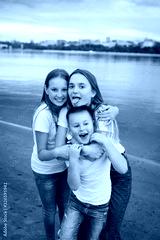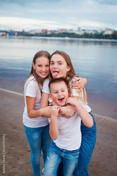 Happy family having fun ourdoors, loving brother and sisters lifestyle