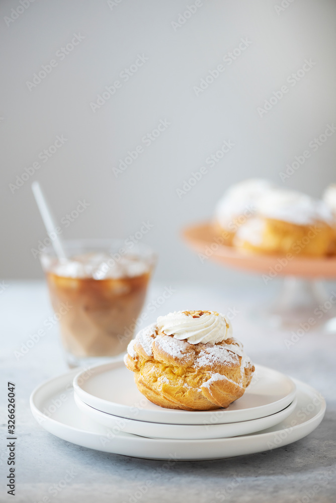 Custard cakes with cream