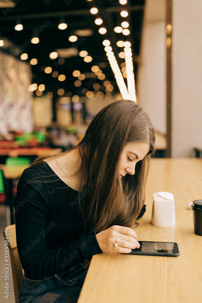 pretty woman with long hair on the phone
