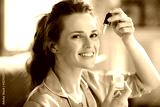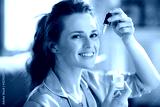 happy young female using cosmetic elixir
