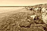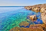 Rocky coastline and turquoise transparent sea in the Salento coast near Taranto, Puglia, Italy
