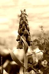 Dark red almost black flowers of fritillaria persica in spring garden on the background of blue sk . Persian crown imperial. Vertical with copy space.