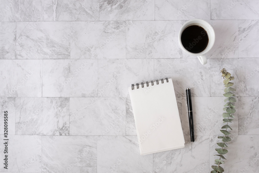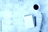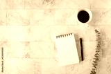 Topview flat lay of working table with office stationary
