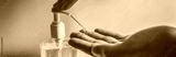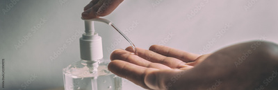 Hand sanitizer alcohol gel rub cleaning hands for hygiene prevention of coronavirus virus pandemic banner panoramic header.