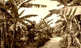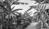 Banana plantation Organic Crop. Rural landscape banana palm field.
