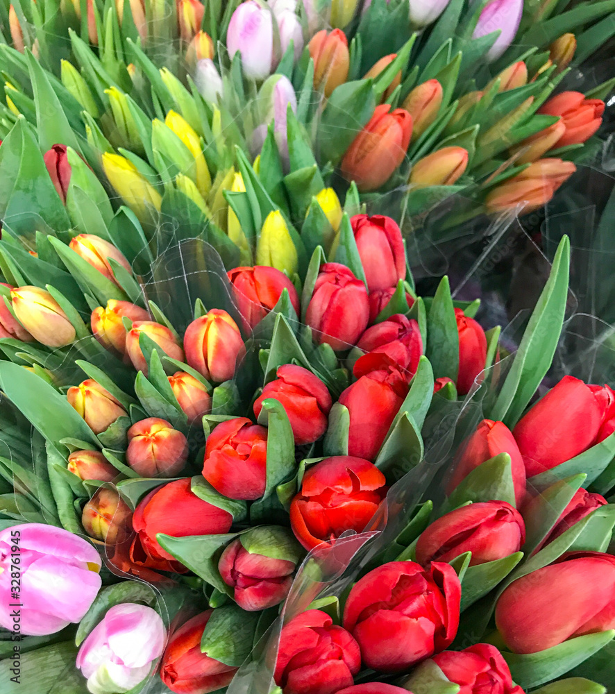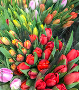 Colorful tulips for sale at market.